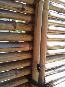 なんとハチが顎を使って、竹に穴を開けている音でした。感心するほど綺麗に丸く削っていきます。